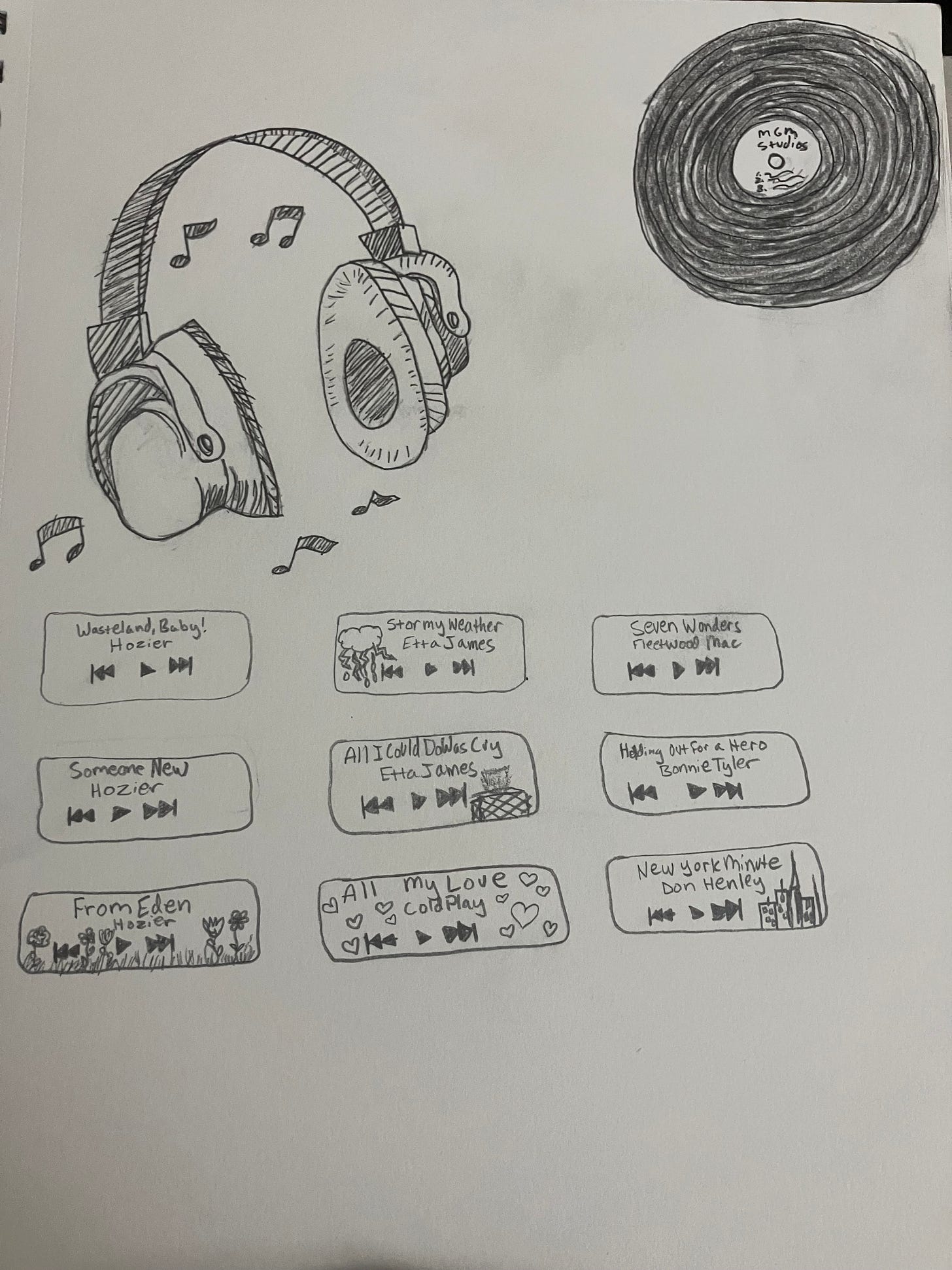 For my rec/playlist analog, I drew a playlist that I will be leaving in either the student union building or in the Anderson library.